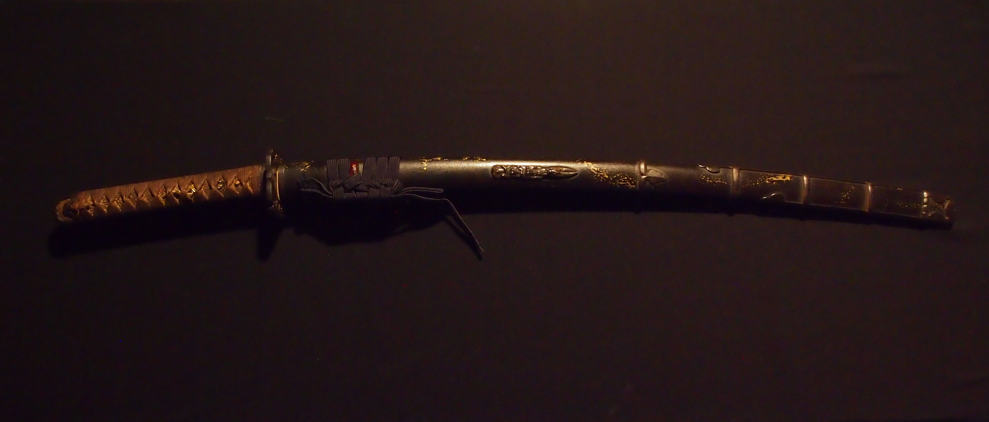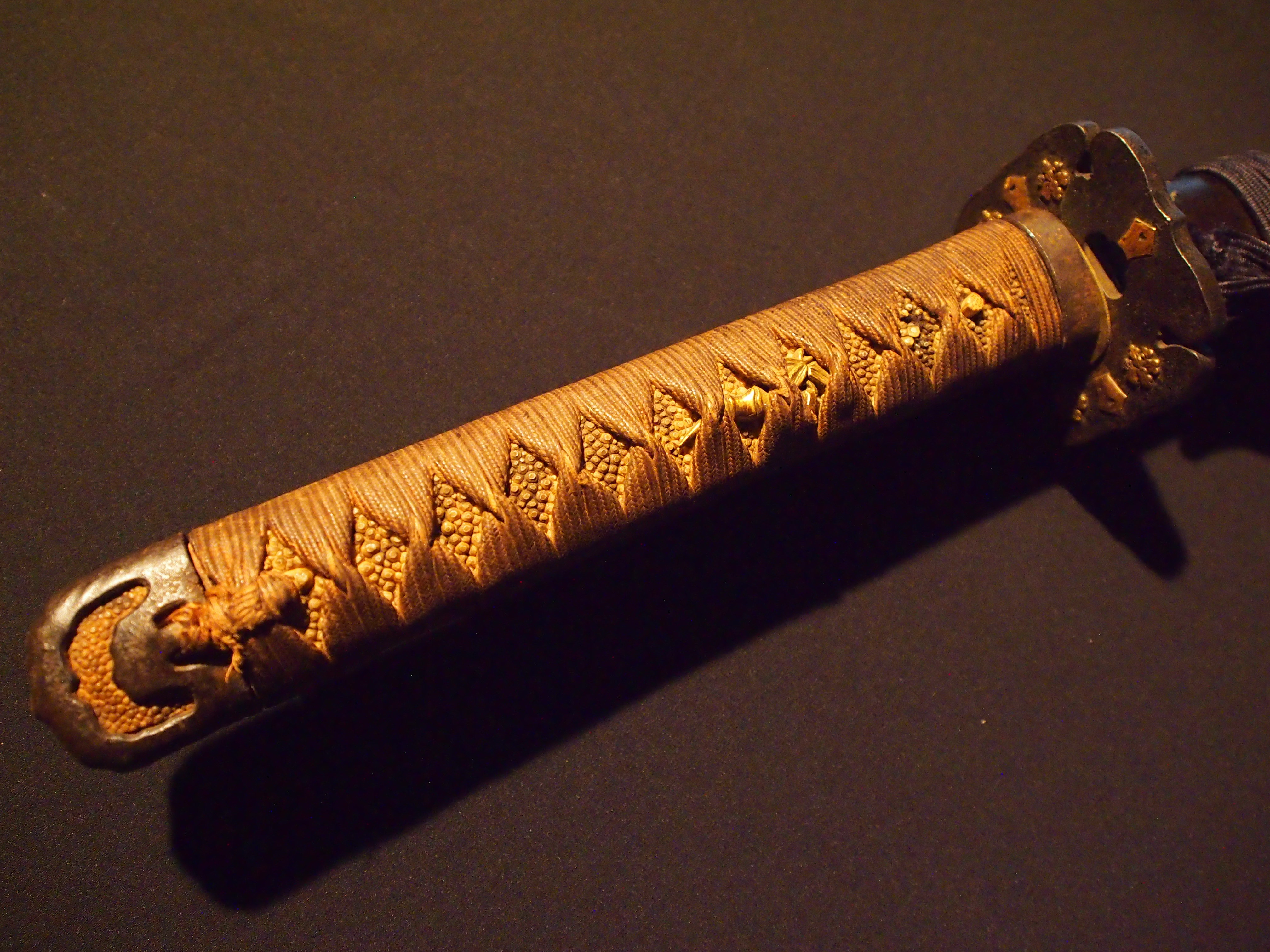 同田貫宗広は、小山太郎といい肥後国延寿鍛冶の末流で、自ら「同田貫上野介拾代嫡孫延寿太郎」と銘す。肥後細川家の重臣である沼田有宗に従って江戸に出て、水心子正秀に学び江戸において作刀する。新々刀同田貫一派の末尾を飾る良工である。本作は板目肌よく詰み、鎬筋に沿って段映りが見られ刃文は小丁子乱れで華やかな出来となる。拵は同時期に拵えられたと思われる時代色豊かな半太刀拵。