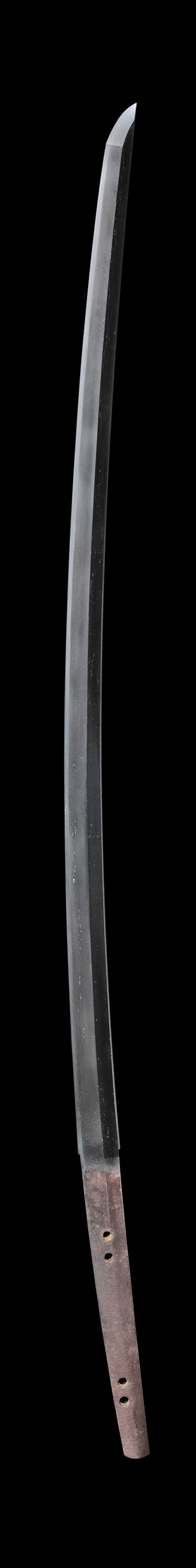 三原派は備後国三原の地にて興り、その中で鎌倉末期から南北朝期かけてのものを古三原と称す。 代表工として正家・正広・政広がいて、その後室町末期まで栄える。三原の地は中央の社寺の 荘園があった関係で大和気質の作風が見られる。特徴として大和に倣って直刃調の作が多く 見られる。 本作は豊かに反りのつく姿に板目肌杢混じり、三原特有の直刃出来となり総体に段映りが見られ古三原と極められる。