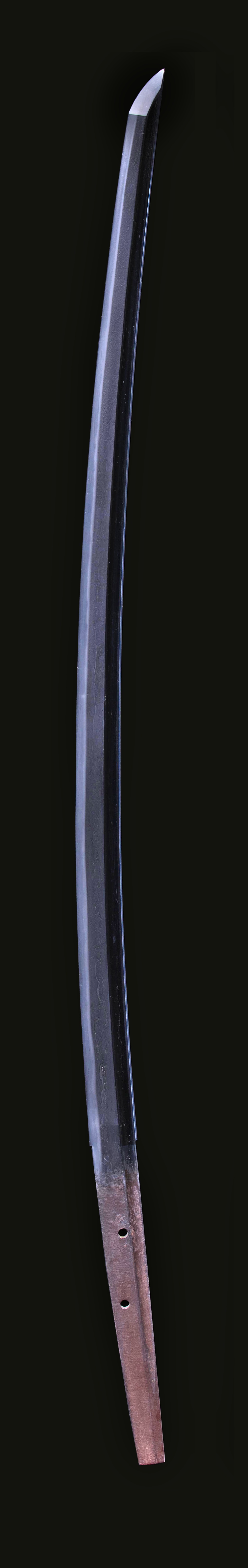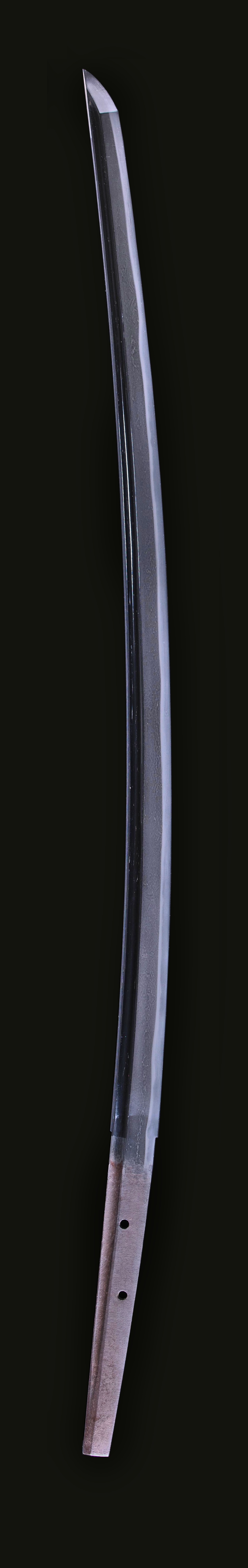 千代鶴派は南北朝末期に越前国にて来国安門の千代鶴国安を祖として栄え、以後室町期まで続く。 本作は千代鶴守弘と極められ、直刃調の刃は明るく冴え元には来肌のようのものが 現れる。大擦上ながら身幅はしっかりとしており非常に健全な出来となる。 守弘は国安の子で千代鶴の初代といわれ室町中期の嘉吉・文安の年期作まであり数代続く。