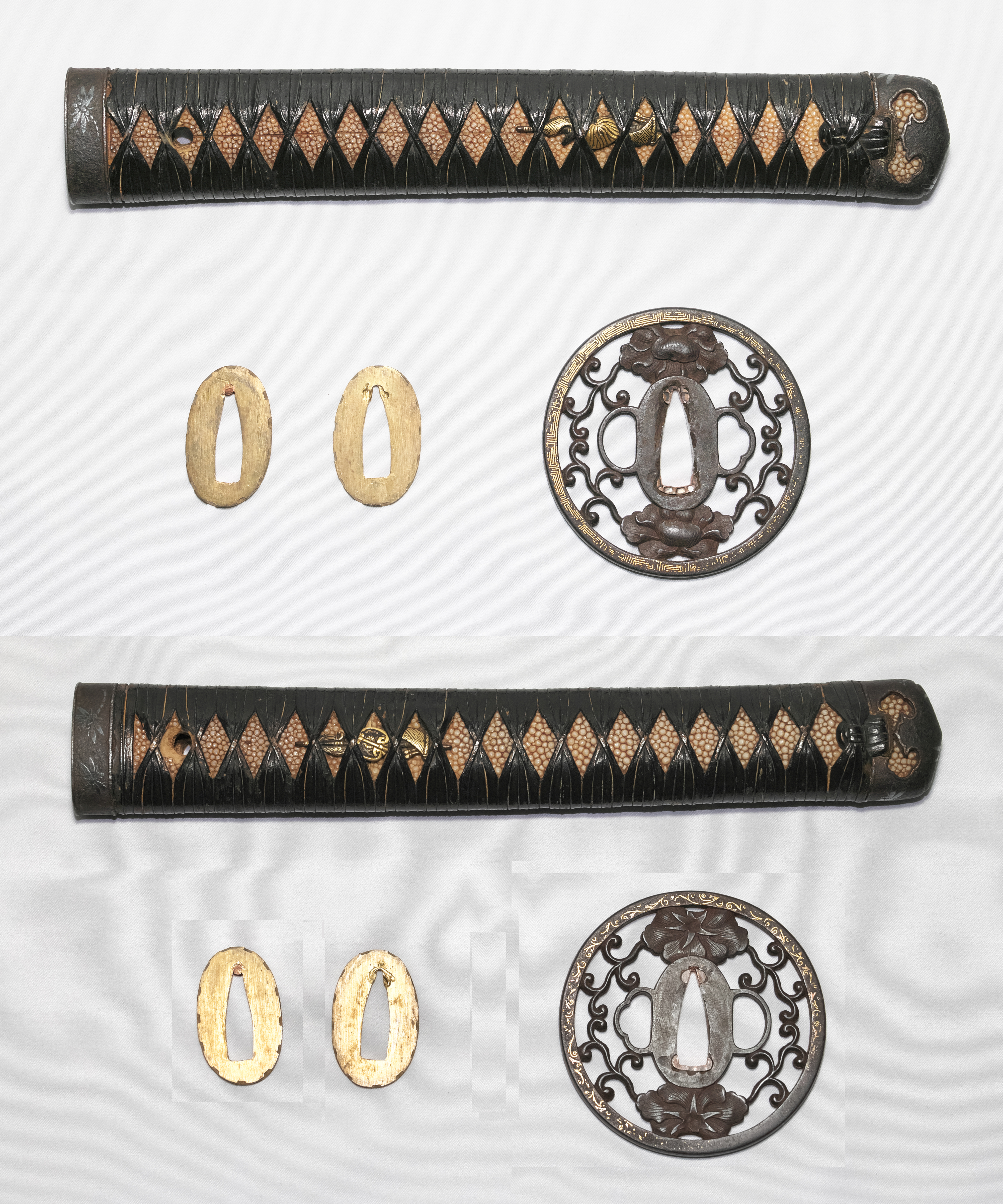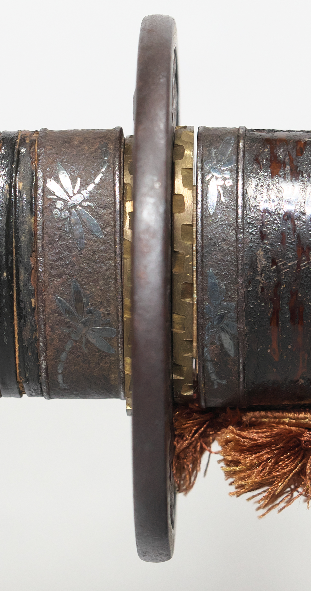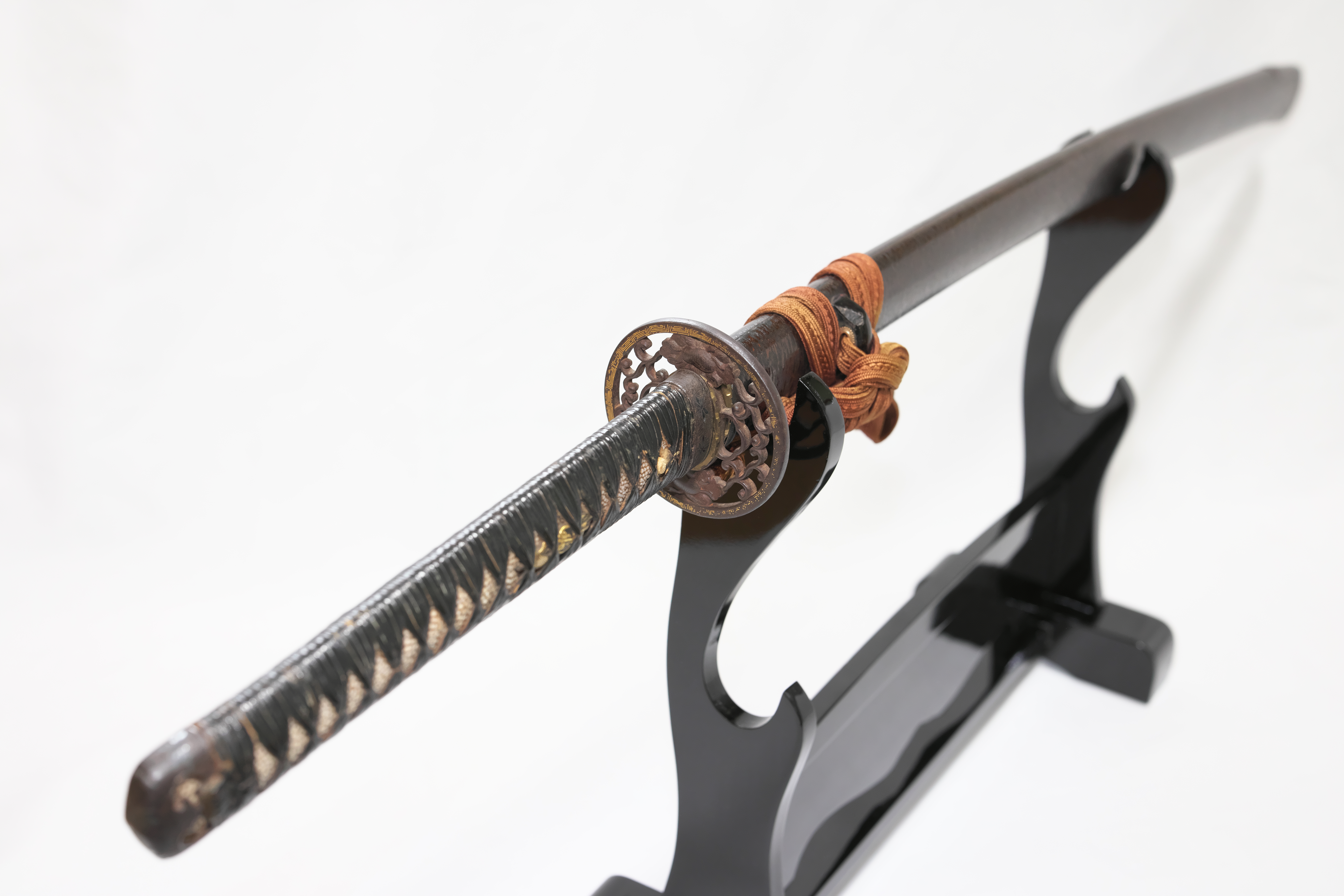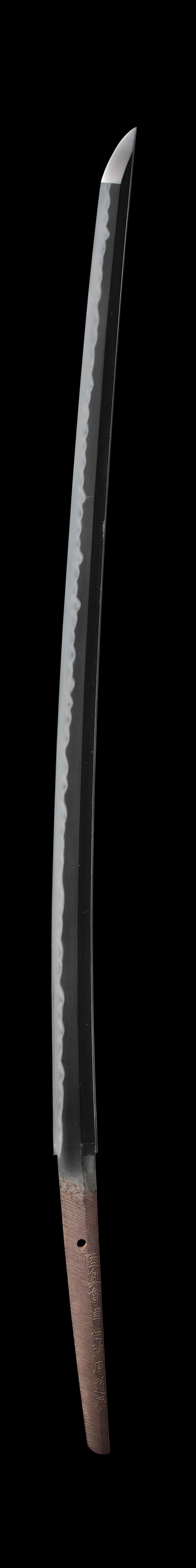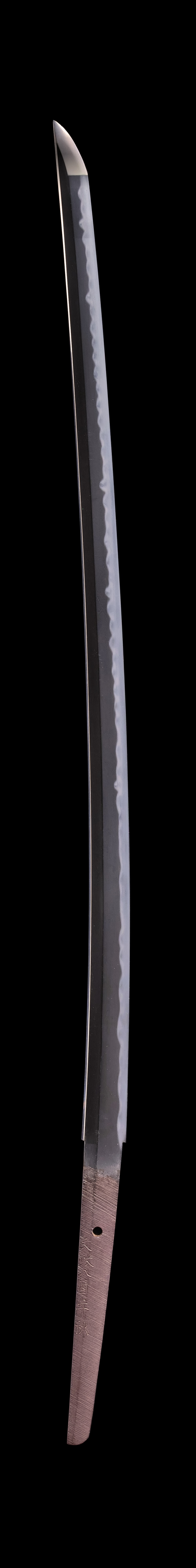 会津道辰は初代は三善道長の門人といわれ、元禄四年に京に出て三代伊賀守金道の弟子となり 若狭守を受領する。その後岩代国会津に戻り幕末まで六代まで続く。 本作は文政八年(1825年)の年期が入った四代道辰の作。四代道辰は同じ会津藩工で薩摩に 行き奥元平から相州伝を学んだ角元興から相州伝を学ぶ。出来は互の目に尖刃混じり砂流し さかんにかかる。当時、刀に合わせて作られたと思われる時代拵付き。