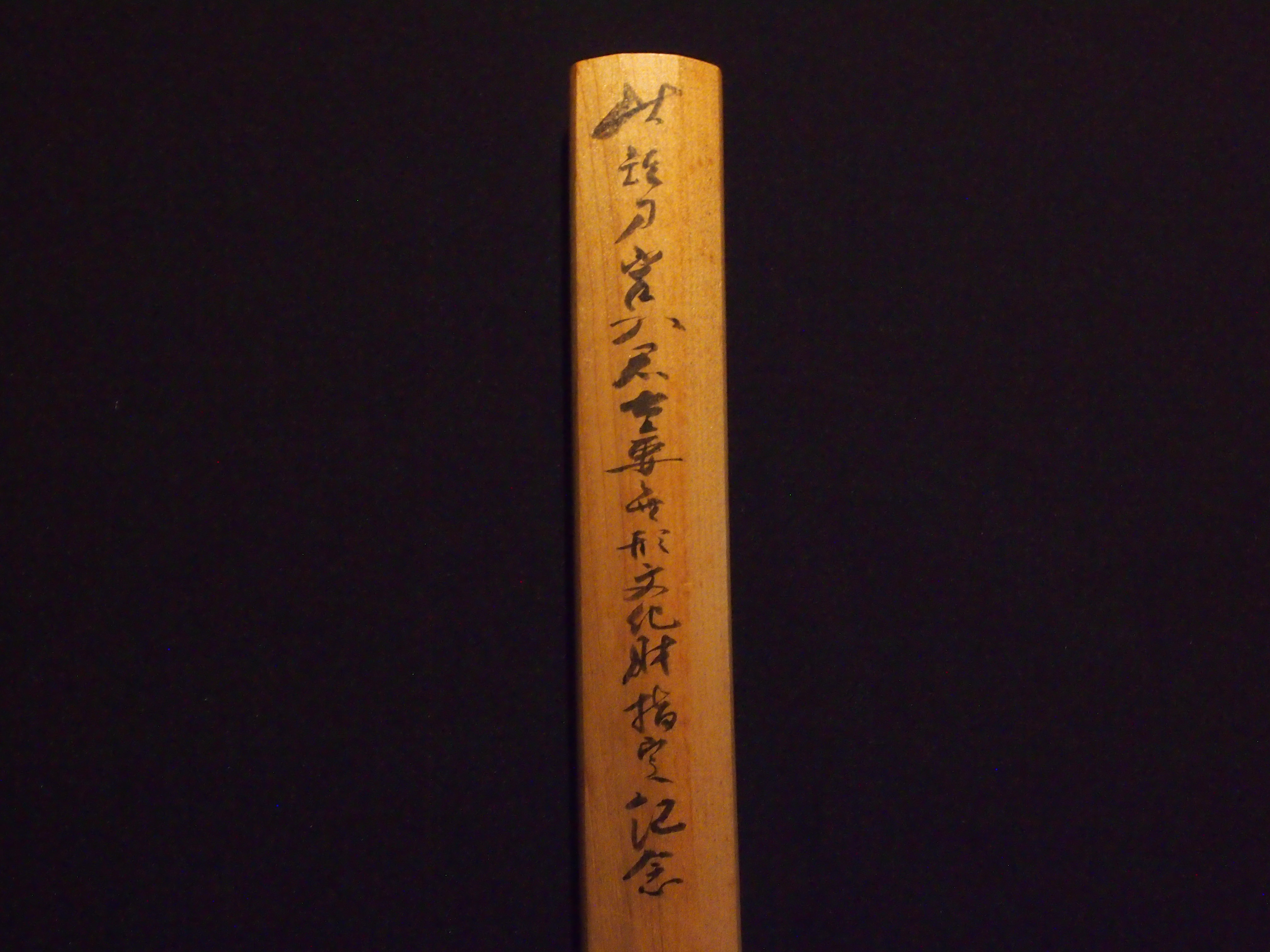 大正2年(1913年)長野県埴科郡坂城町に生まれる。昭和12年栗原彦三郎主宰の日本刀鍛錬伝習所に入所し、以後総裁名誉賞、海軍大臣賞、文部大臣賞等を受賞する。昭和38年5月、最年少の四十九歳で重要無形文化財保持者(人間国宝)に認定される。同48年昭平から行平に改名する。第六十、六十一回の伊勢神宮式年遷宮にさいし御神宝太刀を謹作する。昭和52年勲四等に叙せられ、旭日小綬章を受章する。昭和52年11月24日没。山城伝、備前伝、相州伝に通じ、特に郷里の先人源清麿風の相州伝に優れた作を残す。 本作は地鉄よく練れ、刃文は互ノ目が連なり足入り沸が厚くつき相州伝を思わせる非常に覇気のある秀逸の出来となっている。鞘書きには『重要無形文化財指定記念』と書かれており、記念に打ち下ろされた入念作であると思われる