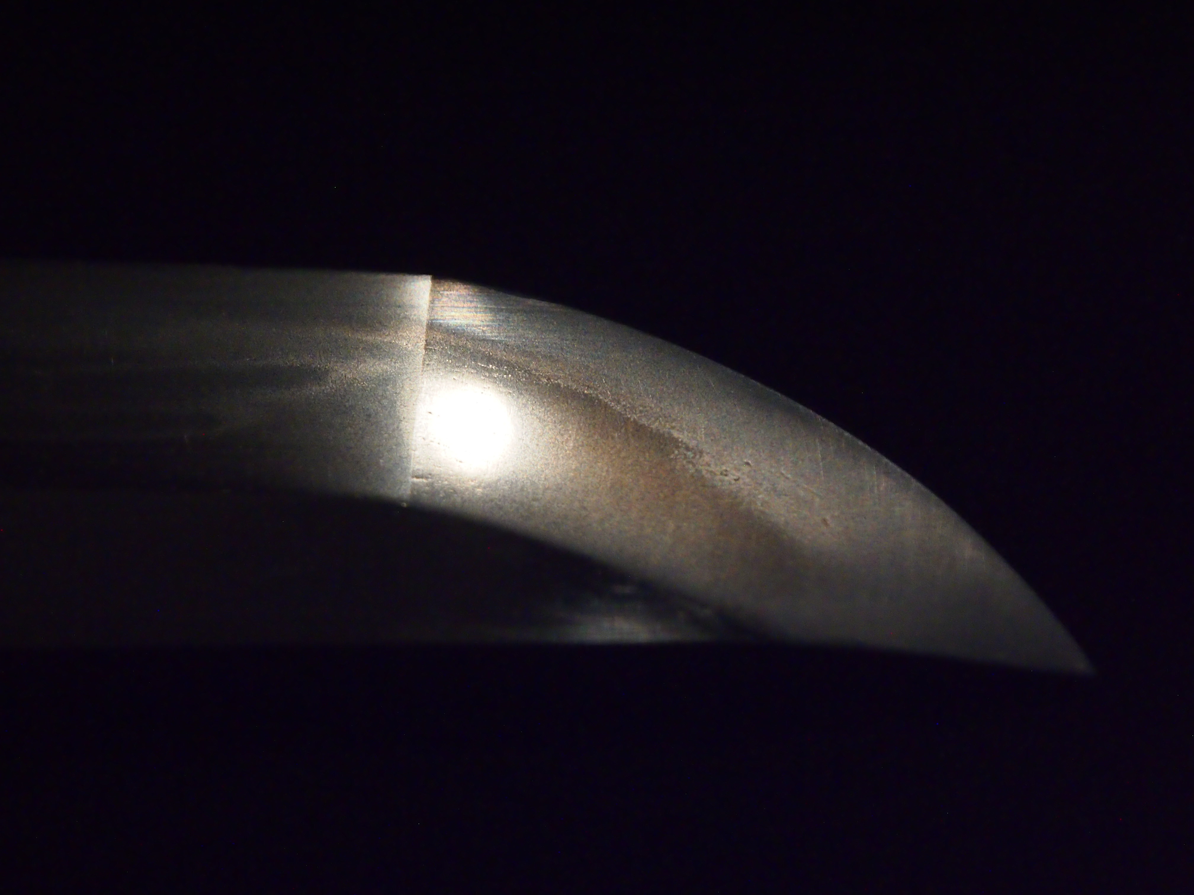 京丹波三代。寛文二年十月二十六日丹波守を受領。しかし寛文九年十月二十五日没のため受領年から丸七年しか作刀期間がないため作品希少。本作は吉道代々の特技である簾刃を見事に焼き、足、葉も入った出来の良い作となる