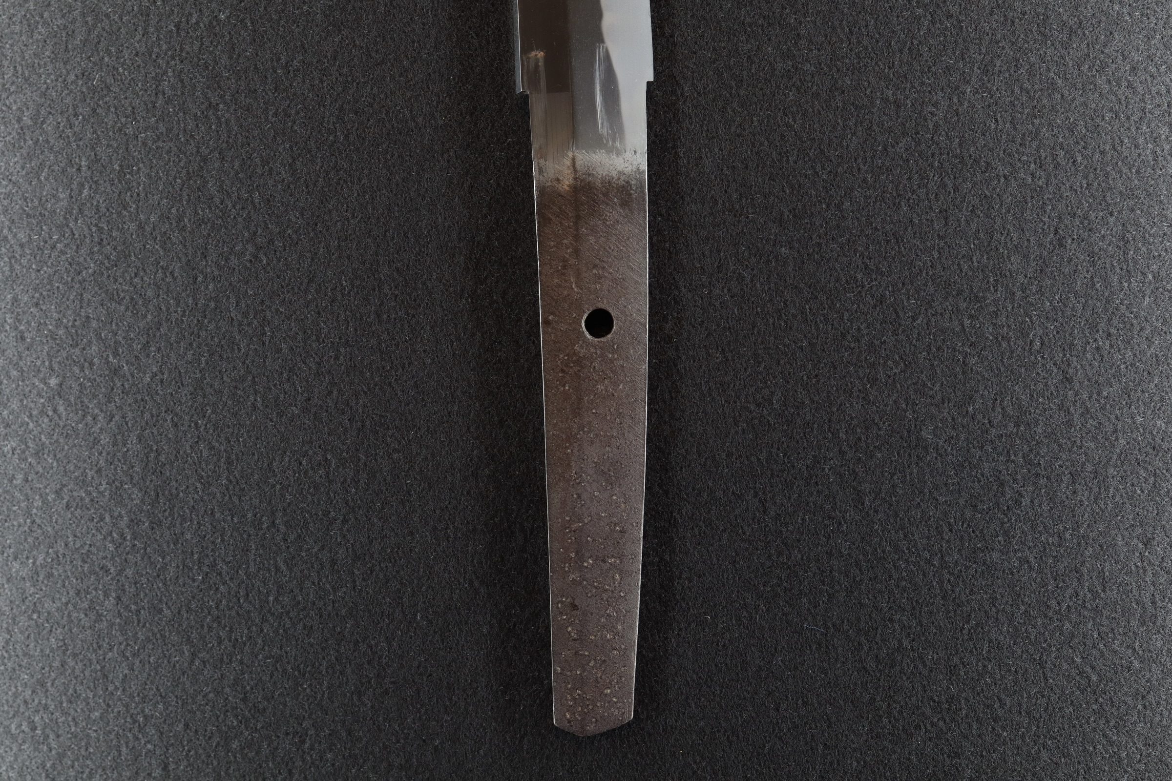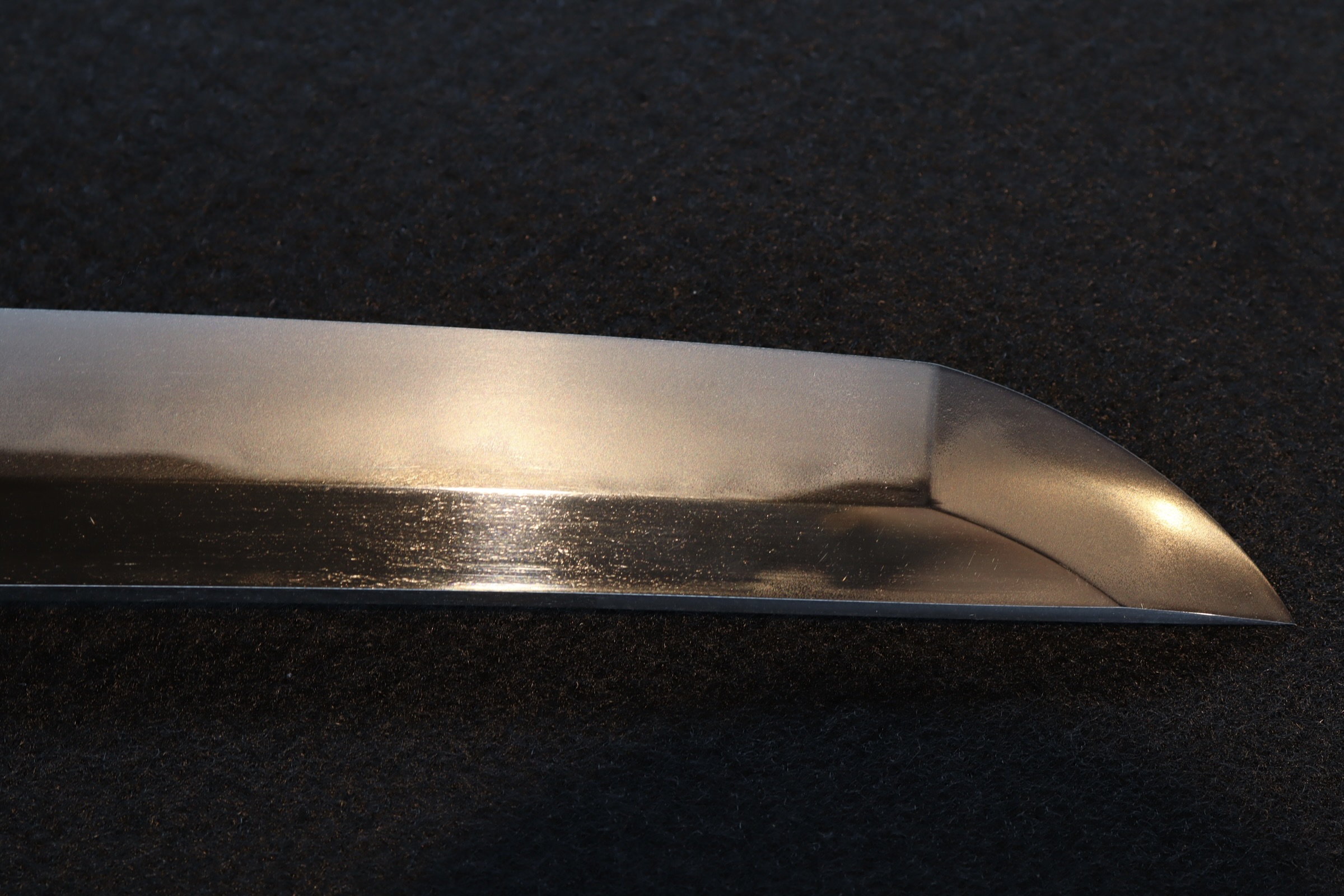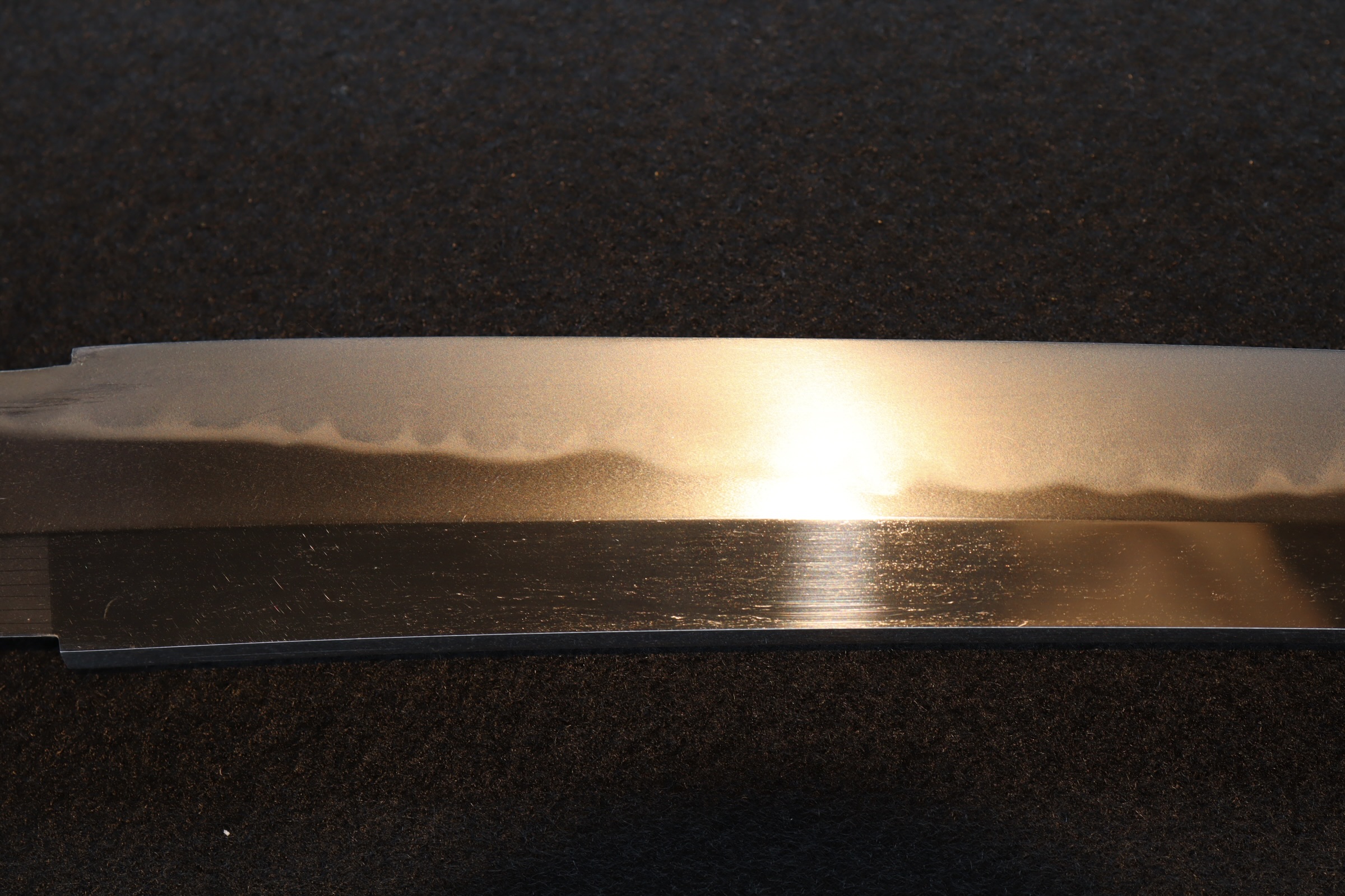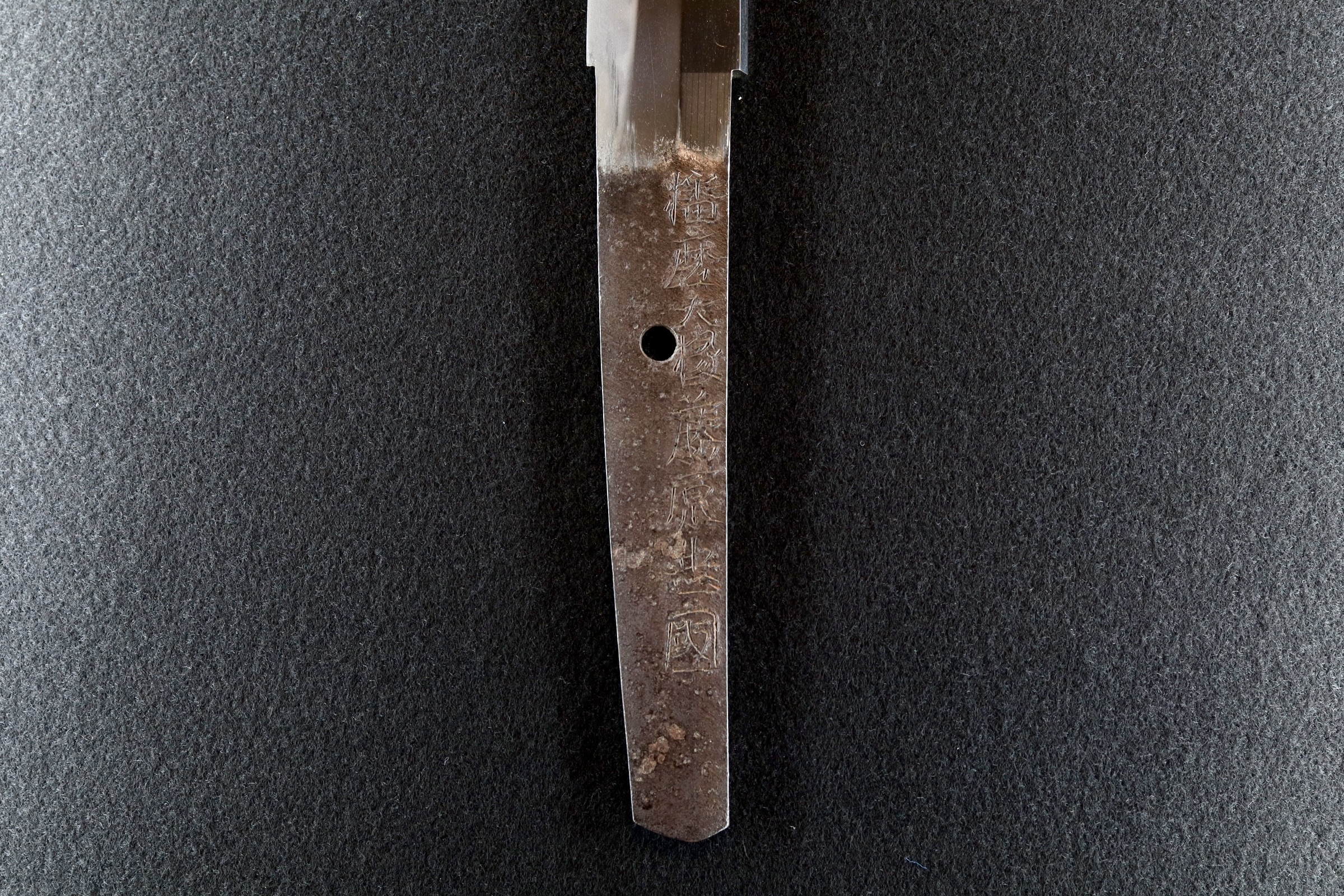 相右衛門吉家(広貞)の次男。初銘広則。寛永十一年播磨大掾を受領し、忠国と改め、のちに播磨守に転ず。 小城鍋島家に抱えられ小城藩工ととなり橋本播磨と号す。老後は入道し播磨入道休鉄と打つ。元禄四年四月二十二日没。 銘は初期の寛永頃は播磨の磨の字の下を「石」ではなく「手」と切り「播摩」となり、正保頃より「磨」と切る。 傍肥前の中では初代正広に比肩するほどの上手。 本作は播“磨”と切り、出来は反りがよくつき、地鉄はよく詰み、刃文は丁子刃が高低に焼かれ一見にして 福岡一文字と見紛うほどの出来となる。金筋も入り忠国の力量が垣間見える頗る出来の良い一振りとなる。