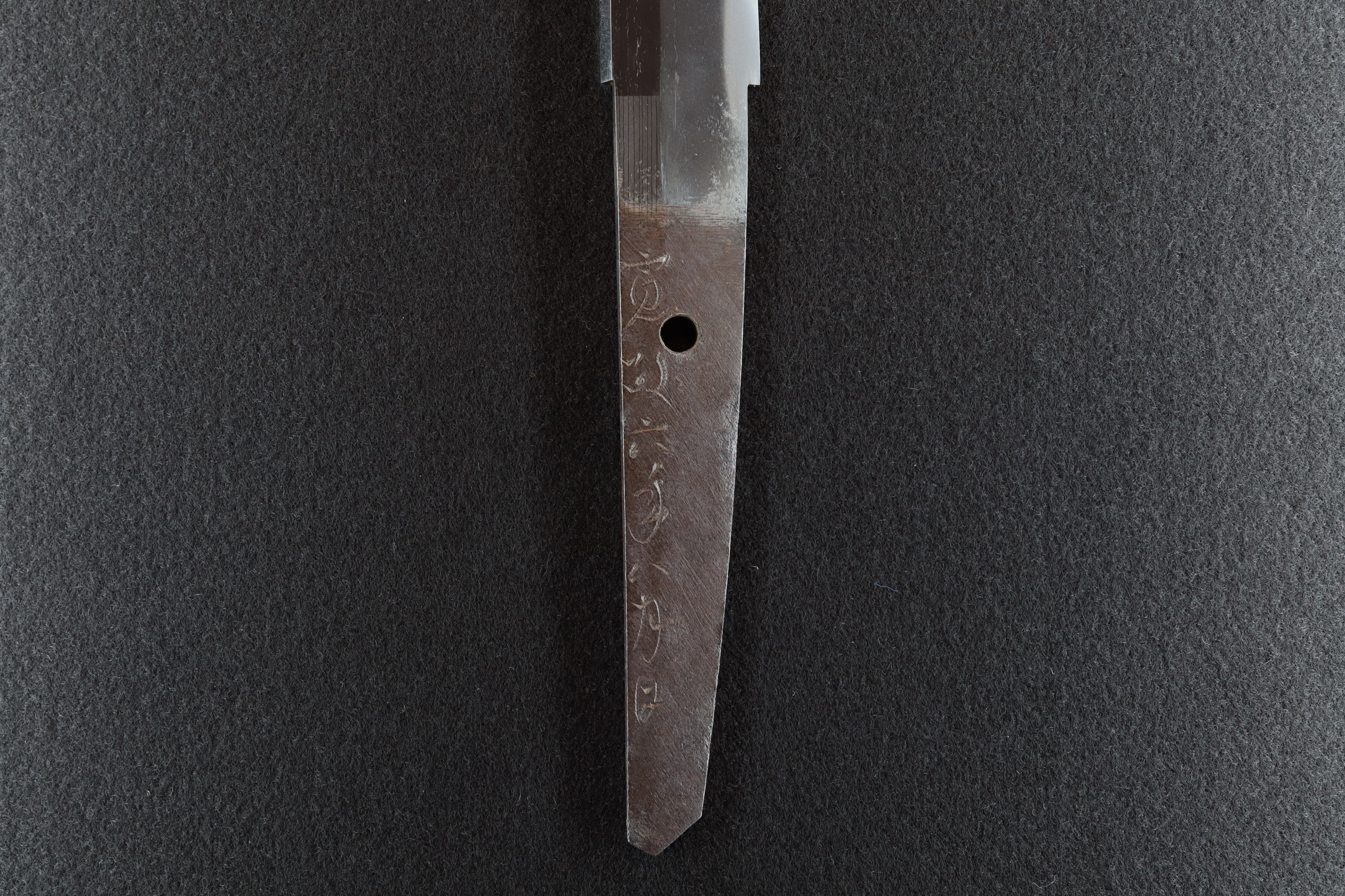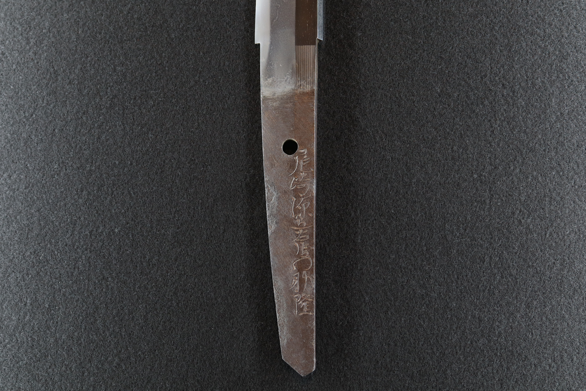 助高は本国播磨で大阪に出て黒田鷹諶の門人となる。寛政十年長門守を受領する。文化二年に53歳で没。 大阪新刀期を代表する津田助広に影響を受け濤乱刃の作刀に終始する。大阪の新々刀期を代表する上工の名声に 違わず助広本歌に迫るほどの出来栄えのものもある。 本作は例に漏れず飛び焼きは無いものの、沸のよくついた大互の目が連なり華やかな出来となる。 寛政六年の年期があり44歳頃の作刀となり、気力の充実してきた頃の非常に出来の良い脇指となる。