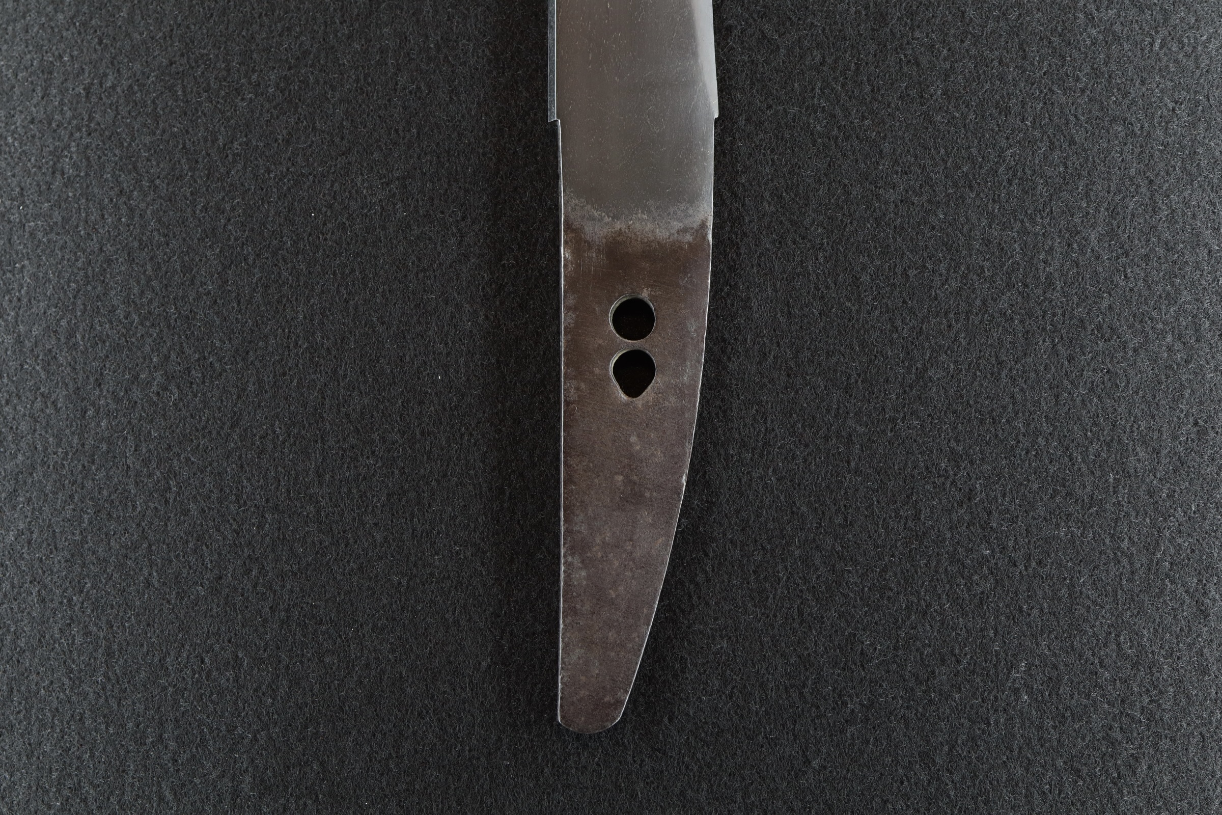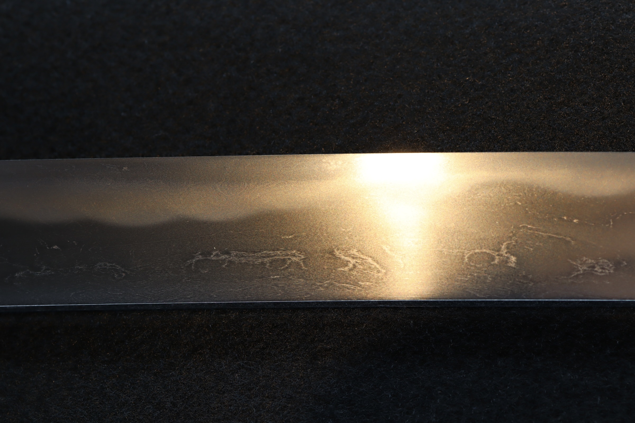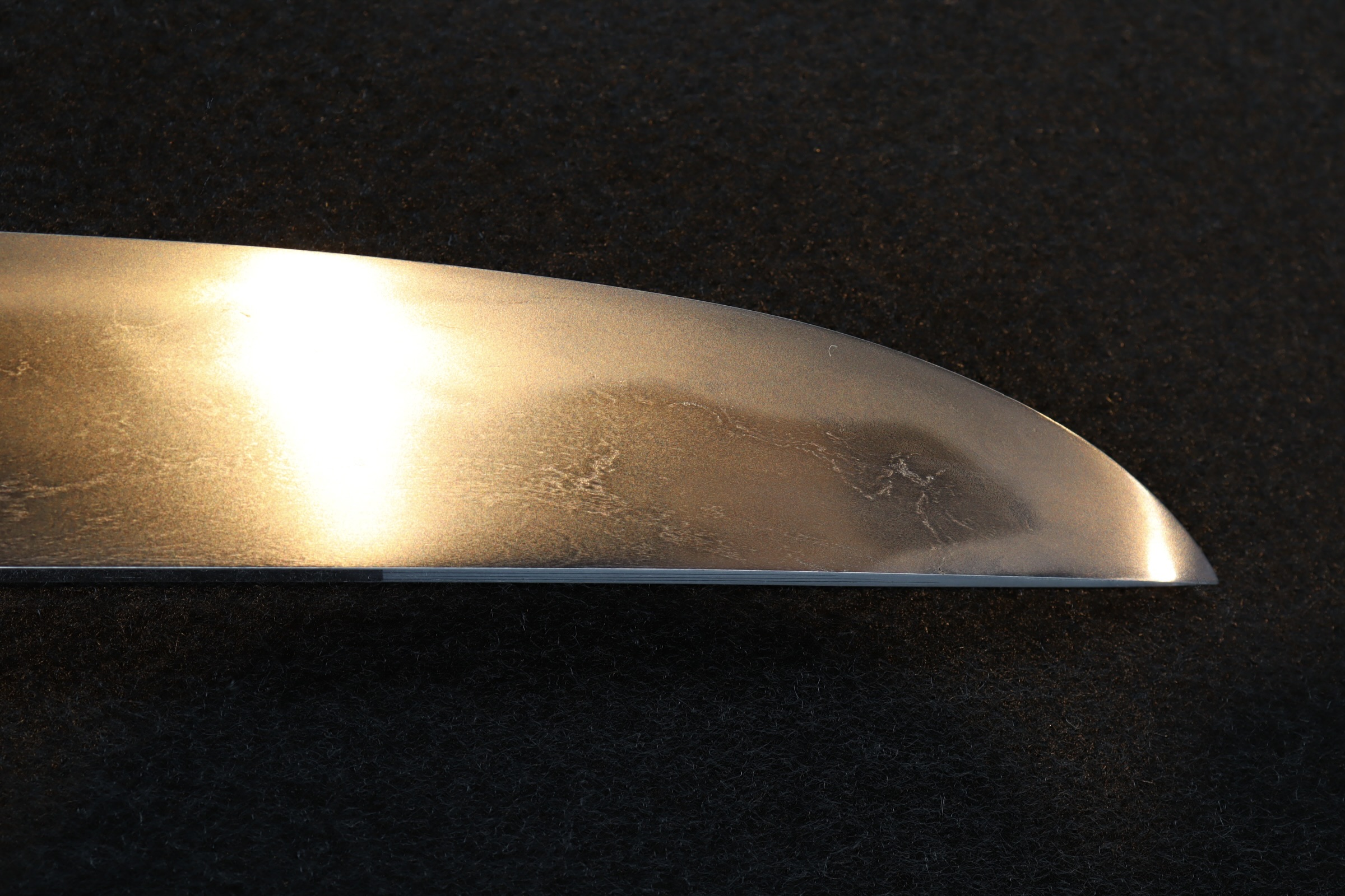 相州広正は古くは南北朝期の永和から応永にかけて作刀された二代広正が現存されており、室町期には皆焼刃を焼くなど非常に華美な 作刀が見られる。本作は相州住広正と銘されており室町後期の六代頃の作刀と考えられる。出来は姿は平造りで地鉄は地沸つき古雅な大板目肌となり、 刃文は沸の厚くついた大小の互の目が連なり相州特有の華美な作となる。