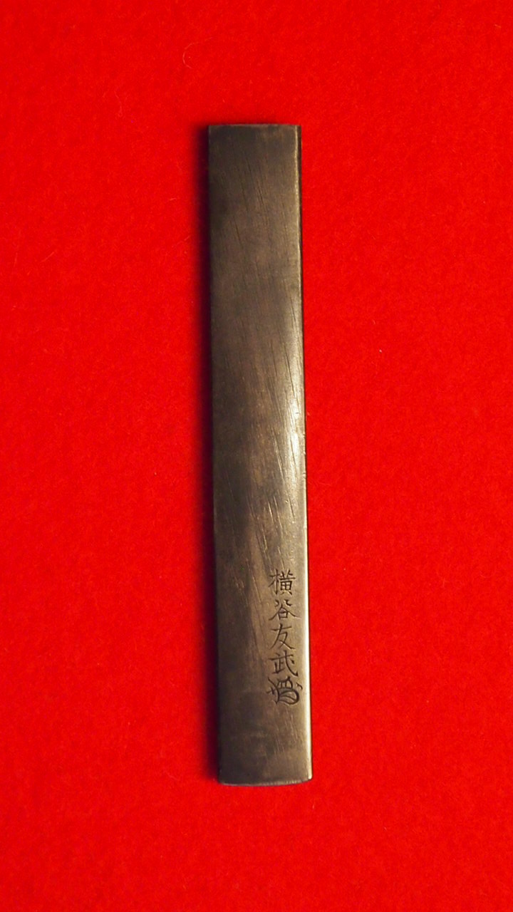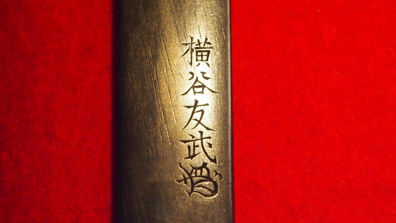 友武は二代宗與の次男で天明五年(1758)に57歳で没する。 本作は横谷系の得意とした片切彫りを用い、張果老が瓢箪から駒を振り出しそれを見た唐子が喜び驚いている姿が巧く表現されている。