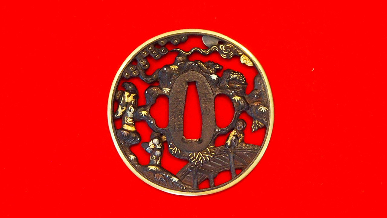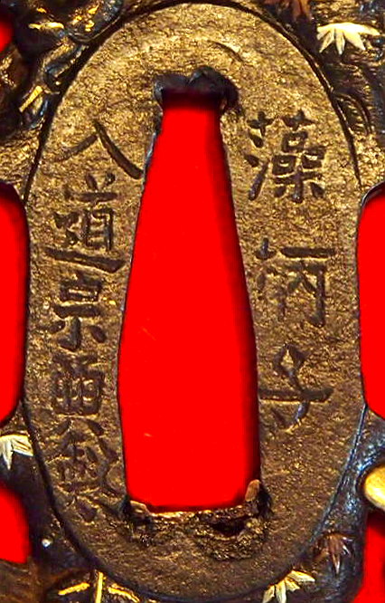 喜多川、または喜多河と名乗り京都から出て近江に移り、主に和漢の人物や物語を使った高彫地透にした鐔を造る。本作は志が高く立派な人格を備えた人を指す高士が 世間から離れて山林などに隠れ住みつき姿を現したところが右に表現されており、中央には野を駆けまわる鹿、上部には銀地で月が配され表裏に立体的に表現された入念な作となっている。