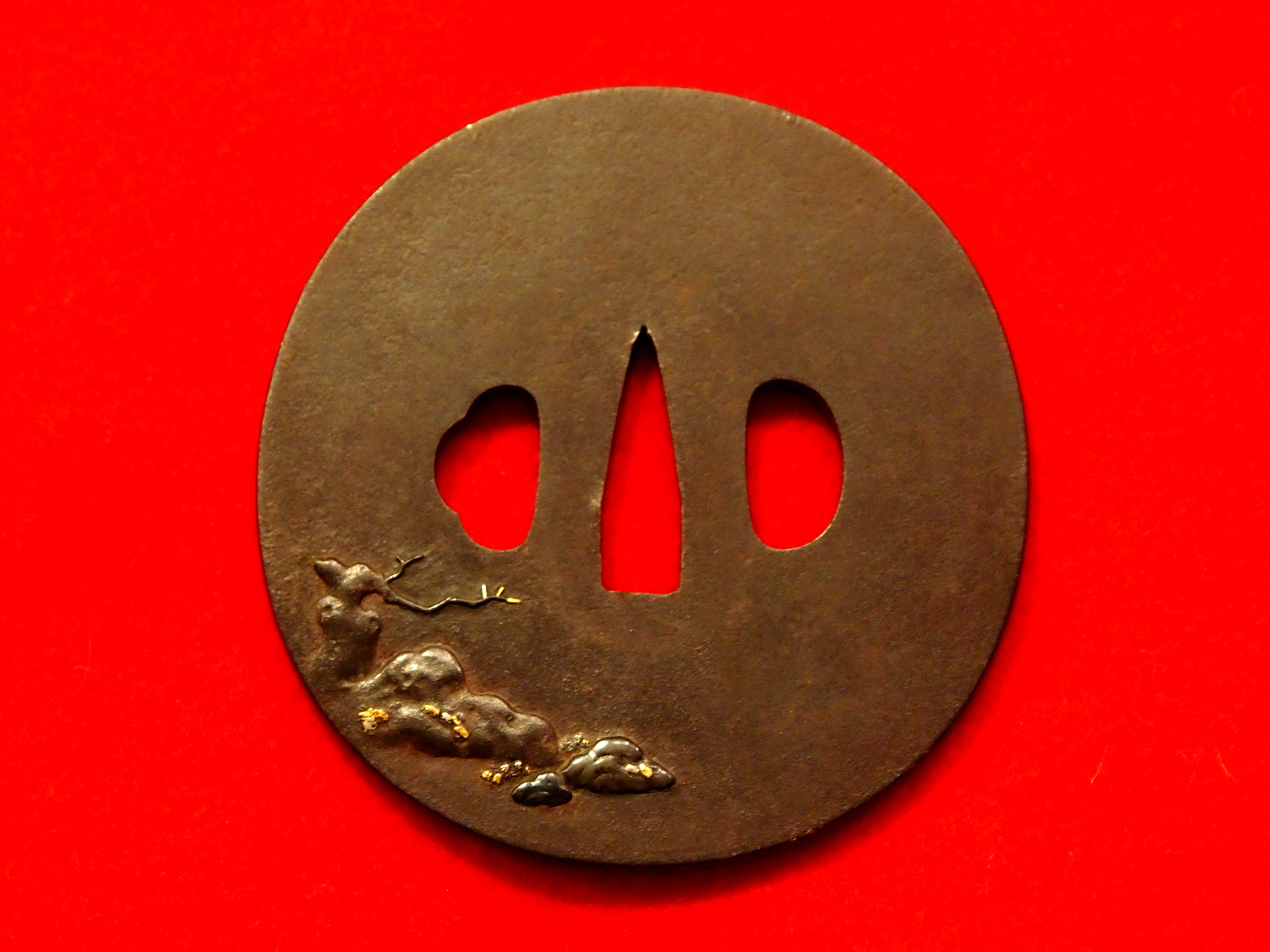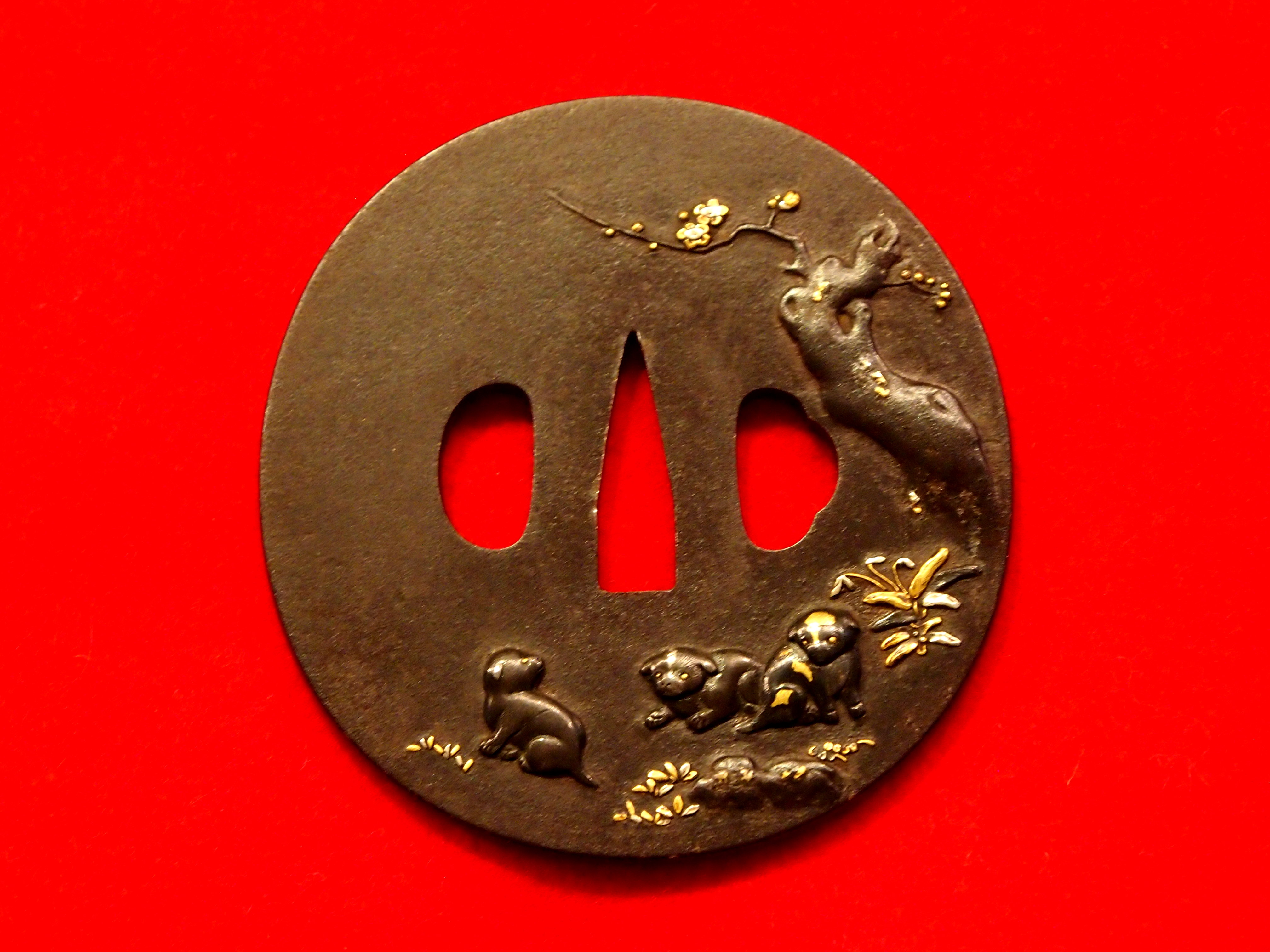 正光は林氏にて会津正阿弥一派。のちに政光、一柳斎と名乗り幕末から明治まで活躍した鐔工。同派中技量にも秀いで, 本作もよく練れた鉄地に狗児を高彫りにし、空間を上手に使った会津正阿弥一派独特の非常に出来の良い作となっているところから無銘ながらも正光極めとされている。